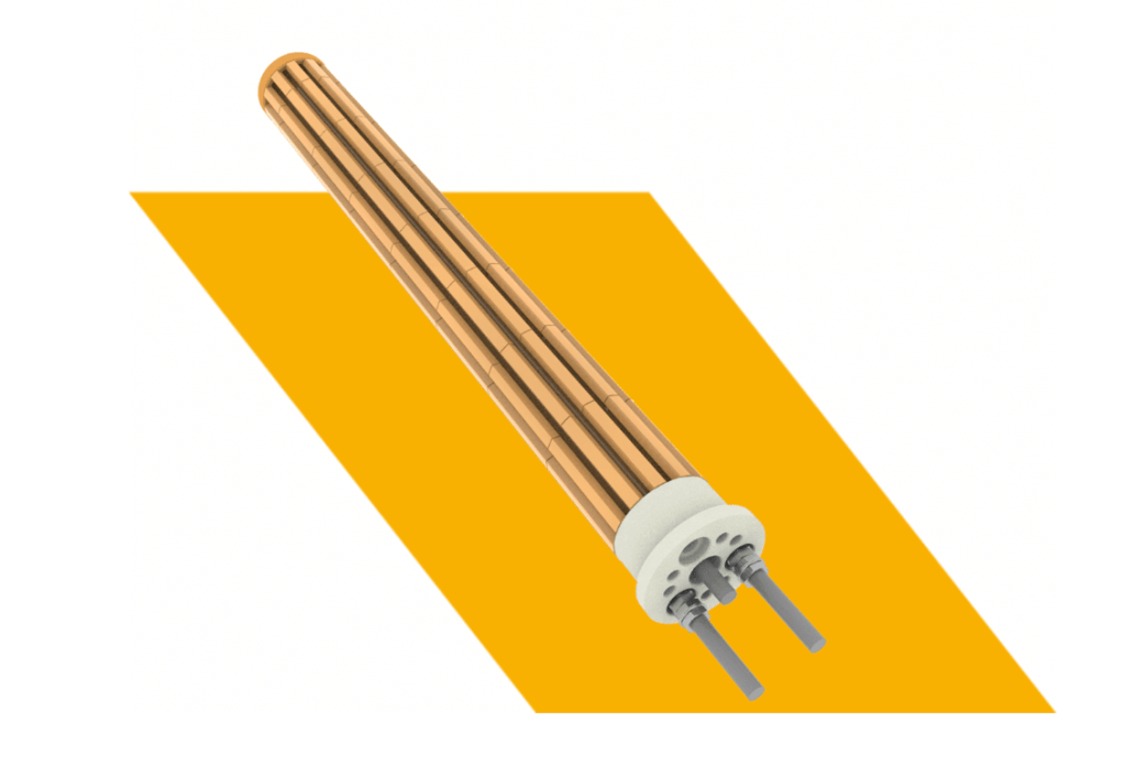 The assembly is embedded in a stainless steel sheath to have high mechanical strength and corrosion resistance, and is filled with high-purity magnesium oxide to remove air pockets and thus provide excellent thermal conductivity and dielectric strength.